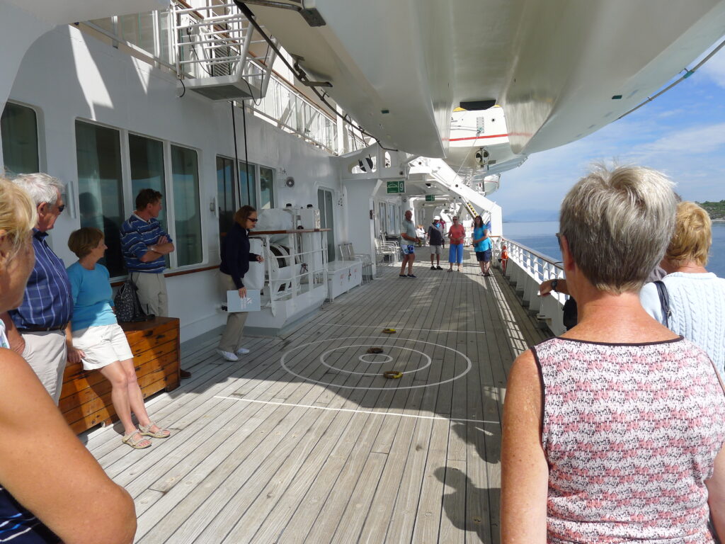 客室のデッキを手摺りにつかまって食前や食後に一周しましょう。