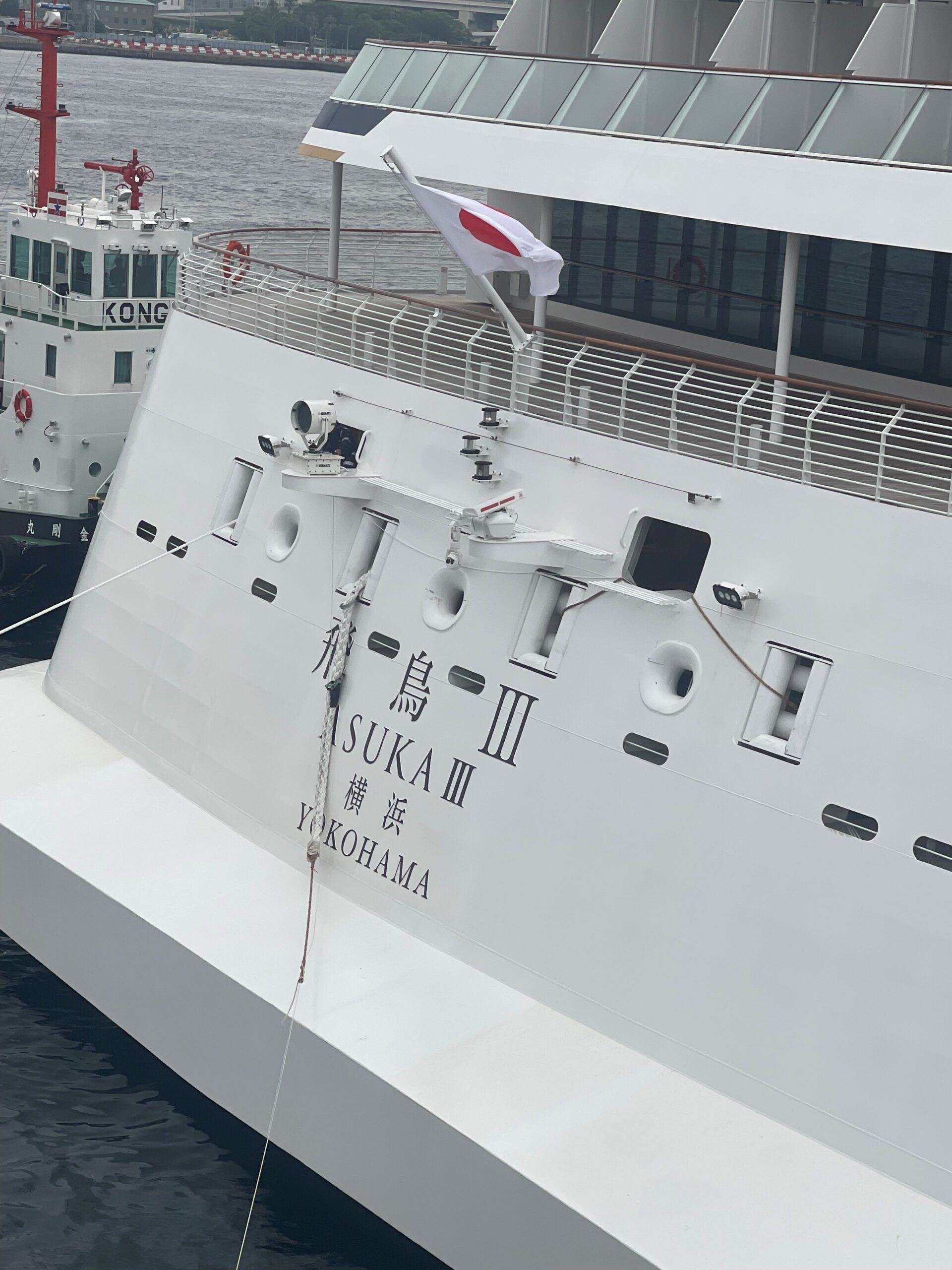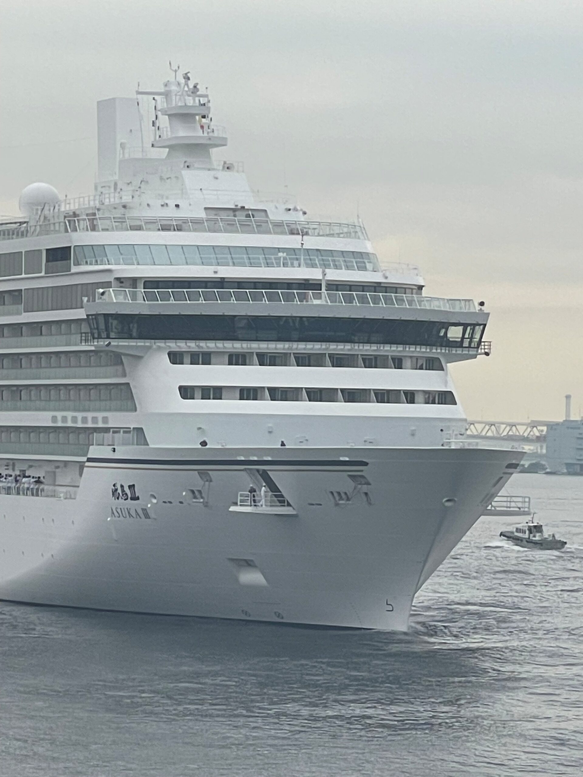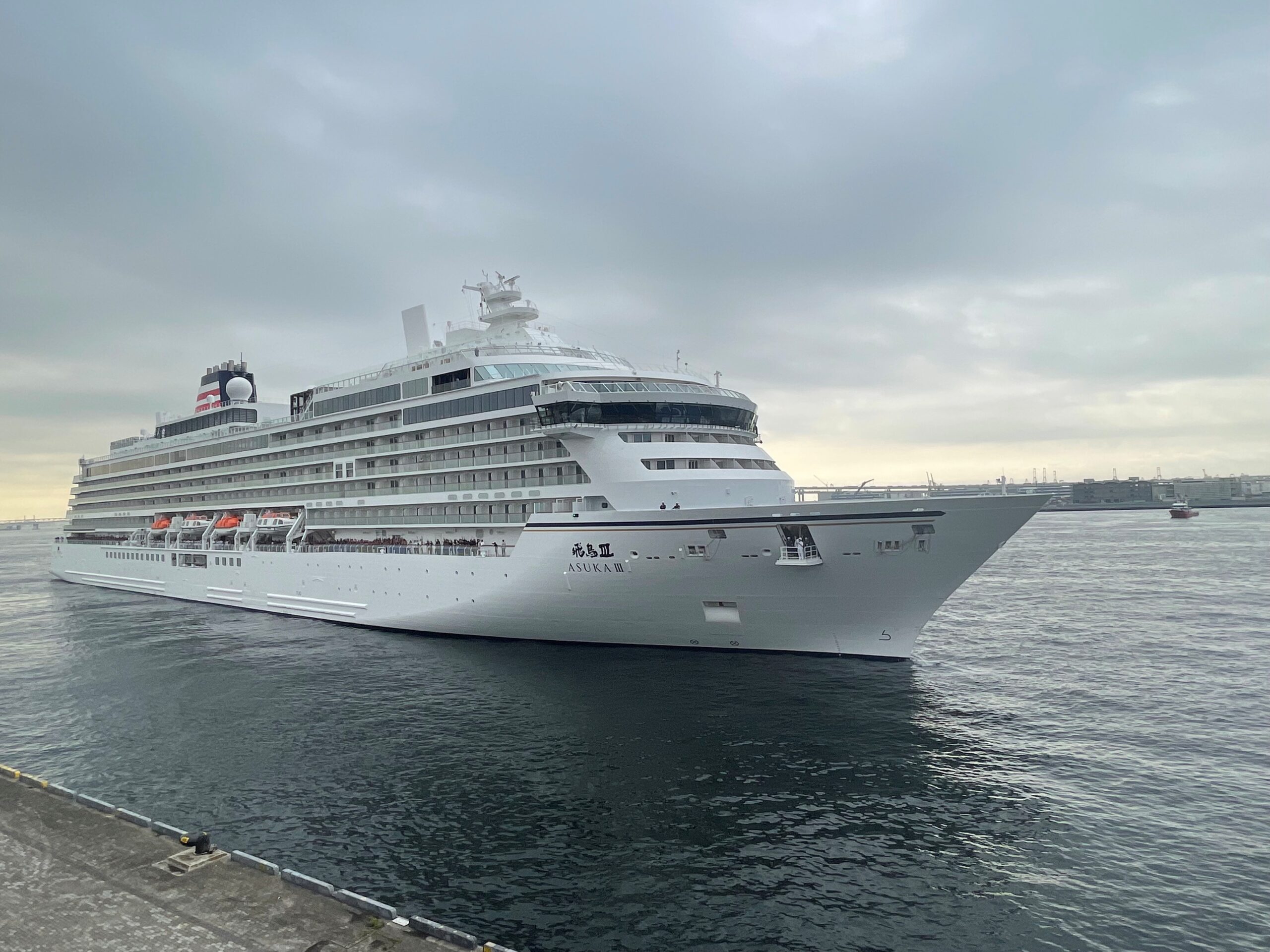 新造船「飛鳥Ⅲ」が、今朝、横浜港に入港しました。大さん橋国際客船ターミナルには、早朝から多くの人が集まり、入港を見守りました。