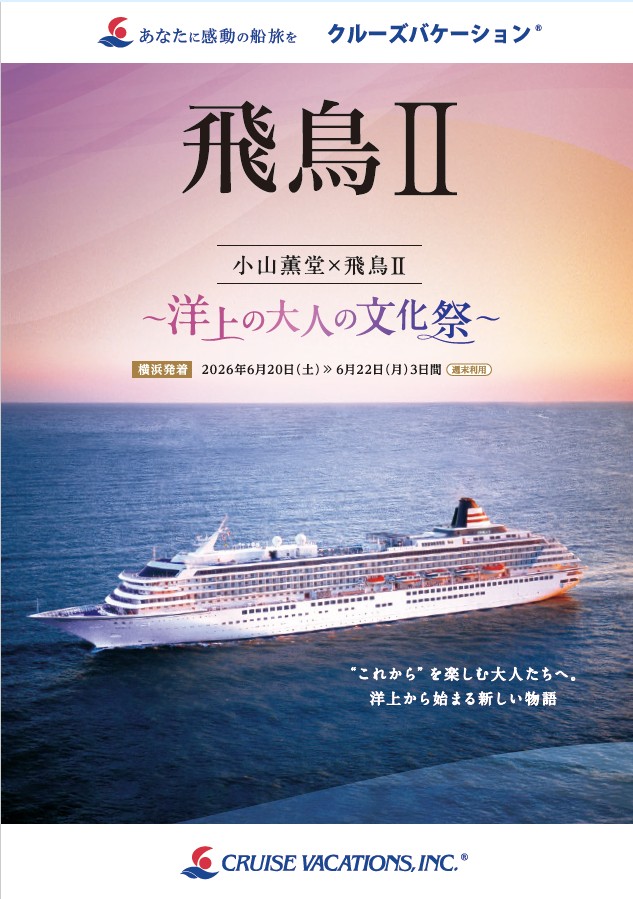 飛鳥クルーズ アンバサダーを務める放送作家・脚本家の小山薫堂氏がプロデュースする「飛鳥Ⅱ」の特別クルーズ「小山薫堂×飛鳥Ⅱ ~洋上の大人の文化祭~」を、2026年6月20日(土)から6月22日(月)までの2泊3日で実施されることが発表されました。