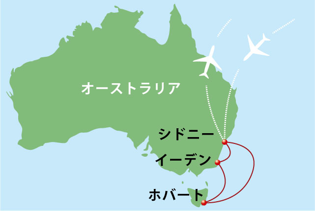 | 航路 | 日本発 ~ シドニー着・乗船 ~ 終日クルージング ~ ホバート(タスマニア) ~ 終日クルージング ~ イーデン ~ 終日クルージング ~ 下船・シドニー観光 ~ シドニー発・日本着 |