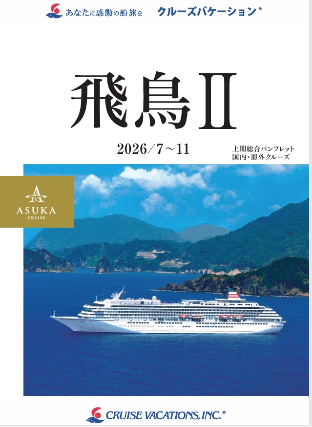 ◆2025年11月12日(水) 10:30~発売! ・博多から大阪への移動型クルーズです。 ●My ASUKA CLUBがリニューアルされ、すべてのクルーズでMy ASUKA CLUB会員割引旅行代金が設定されました。 会員割引価格の適応は、お申込時にMy ASUKA CLUBに入会している必要があります。 必ずMy ASUKA CLUB会員番号をお知らせください。 ●日本郵船株式会社「株主様ご優待割引券」について 2025年10月1(日)以降に出発する14泊以内のクルーズより日本郵船株式会社「株主様ご優待割引券」は、 「My ASUKA CLUB会員割引旅行代金」を含む各種割引、および「My ASUKA CLUB」が発行するデジタルご優待券と併用してご利用いただけます。 |