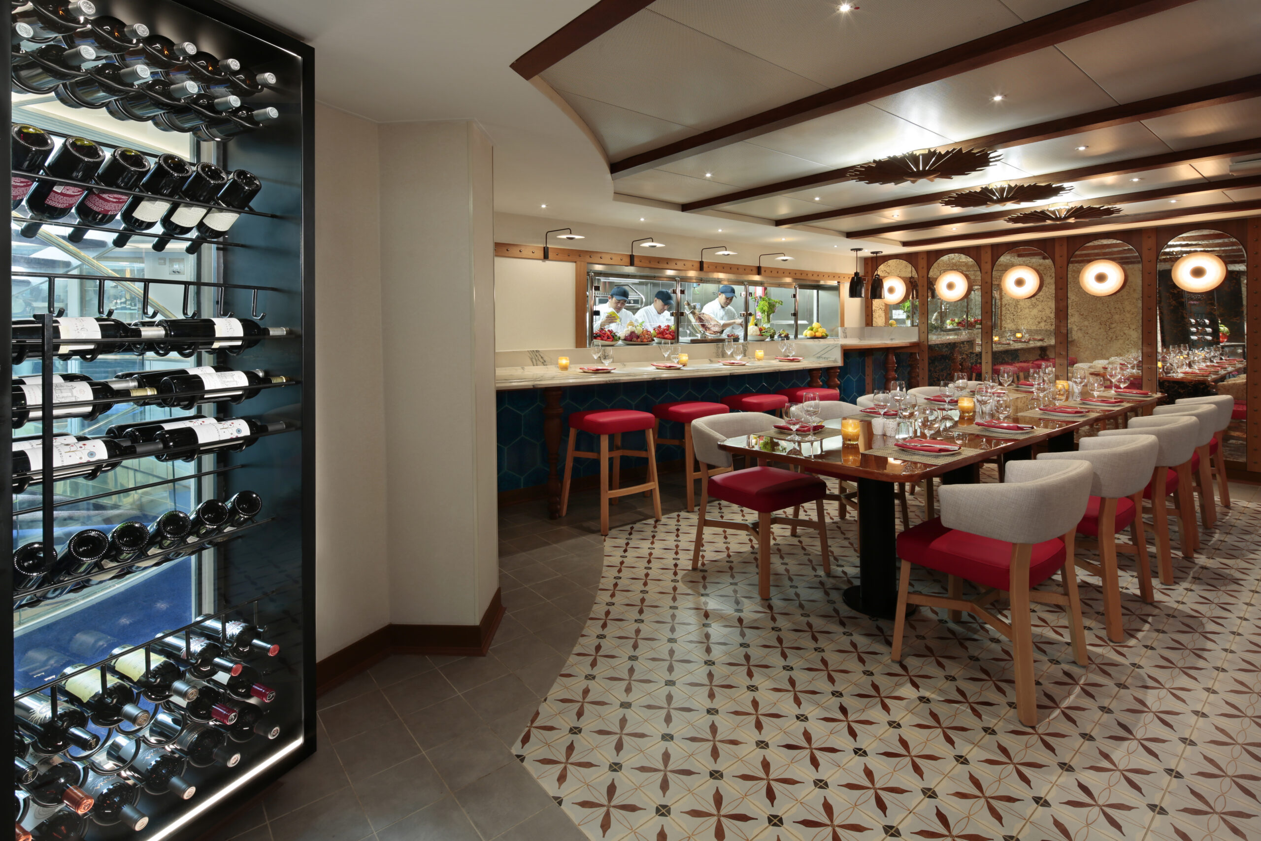 お客様に快適に過ごしていただくため、全室がオーシャンビューであり、広めの収納スペースを擁しているため、クルーズ中の衣類の保管は、クローゼットに収納できます。また、スイートにはリビングエリアが付いています。全室にLDCフラットスクリーンテレビ、DVD/CDプレーヤー、セーフティボックス、ミニバーを備えた冷蔵庫(ソフトドリンクは無料)、国際衛星電話、浴室、L’Occitane®のアメニティキット、ヘアドライアー、テリー織バスローブが用意されています。